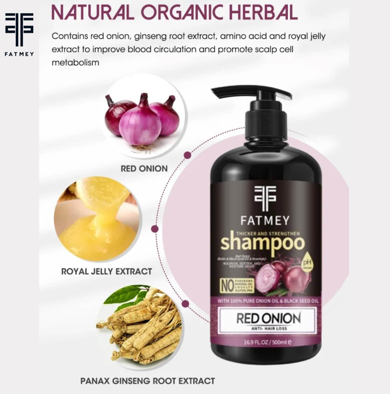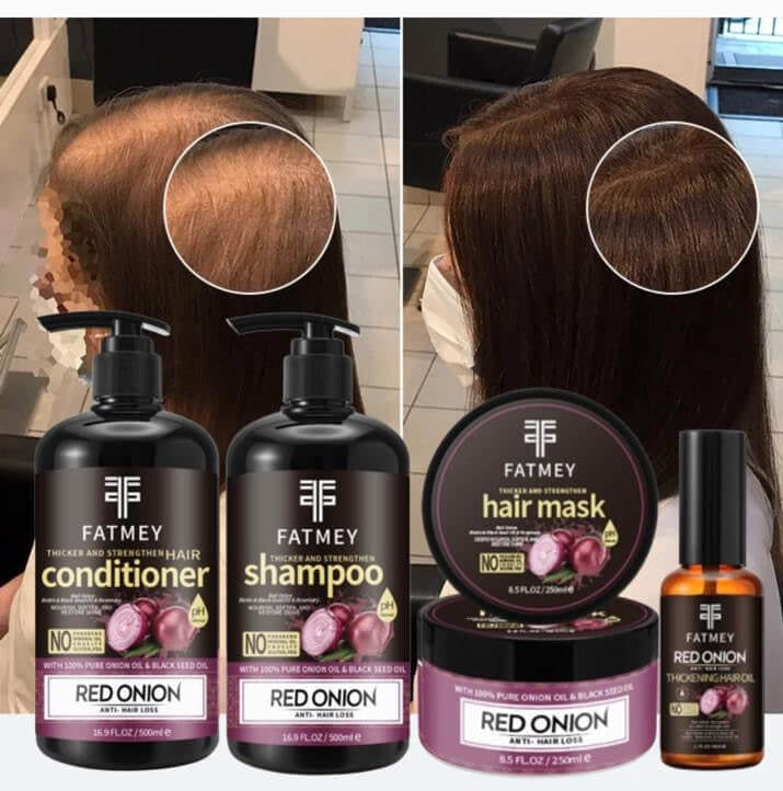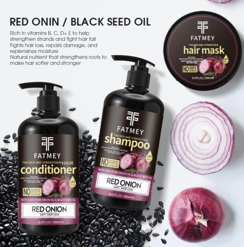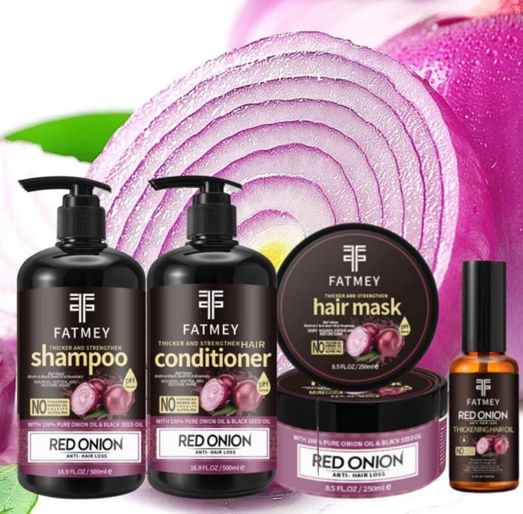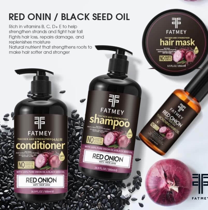 Découvrez la puissance de l’Huile d’Oignon Rouge et de la Graine Noire avec notre gamme Fatmey pour cheveux épais, forts et en pleine santé. Enrichis en vitamines B, C et E, ces produits stimulent les racines, réduisent la chute de cheveux et réparent les dommages en profondeur. Le shampooing nettoie en douceur, l’après-shampooing hydrate et renforce, le masque nourrit intensément et l’huile épaissit et protège chaque mèche. Adaptée à tous types de cheveux, cette gamme complète vous offre une solution naturelle et efficace pour une chevelure volumineuse et revitalisée.